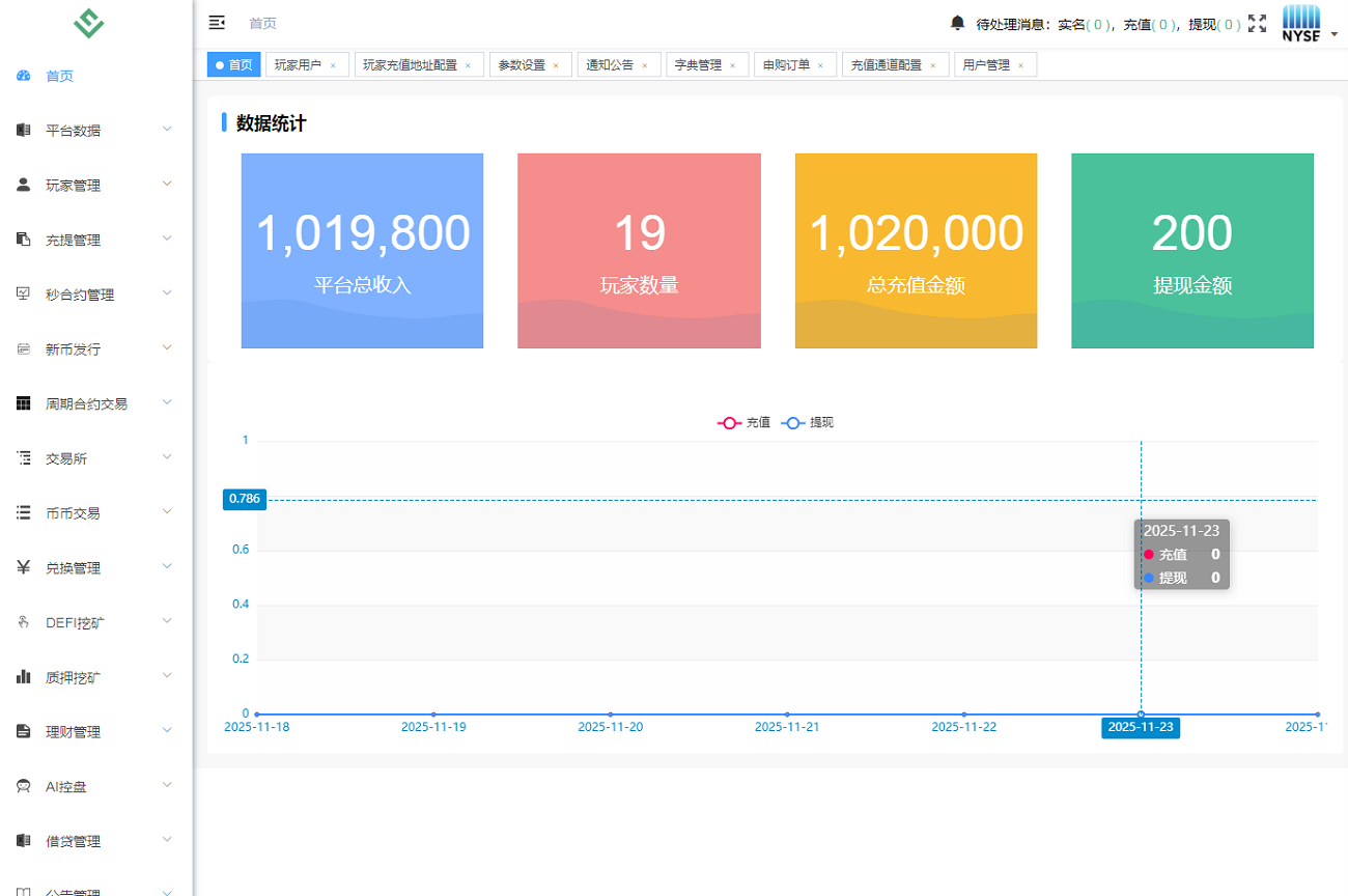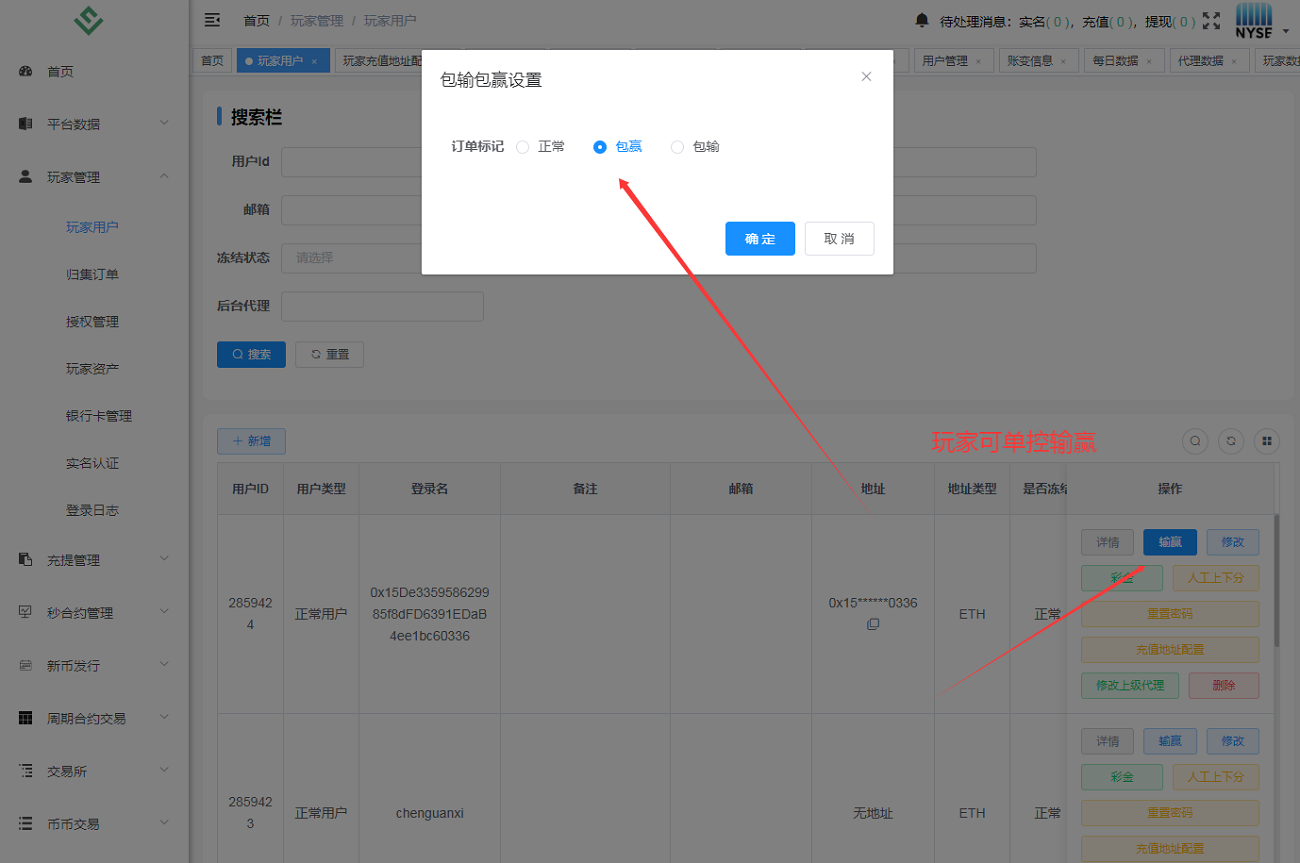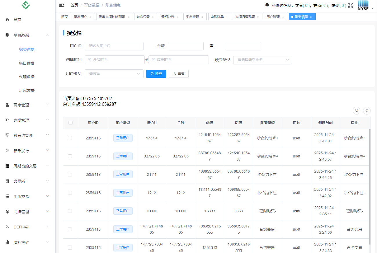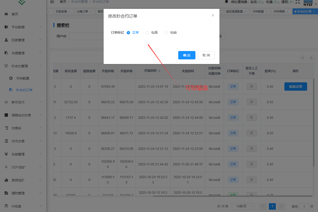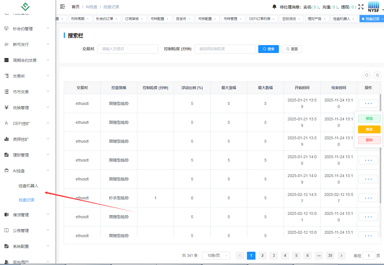 后台功能强大,用户可单控杀,也可以控制币种涨跌,包含AI机器人控盘