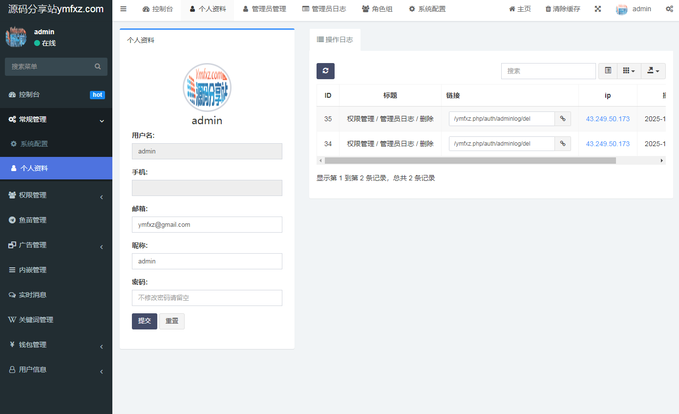后台地址:主域名/ymfxz.php admin a123456 谷歌身份验证器:YAQQCGTUHFE7WQ7Z