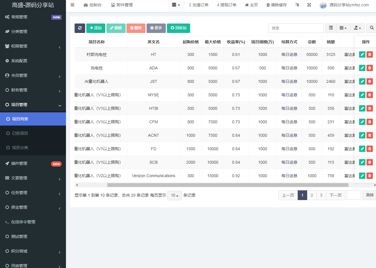 充电桩投资资金盘源码,AI量化投资理财源码,民宿投资理财,前端uniapp纯源码,后端php源码