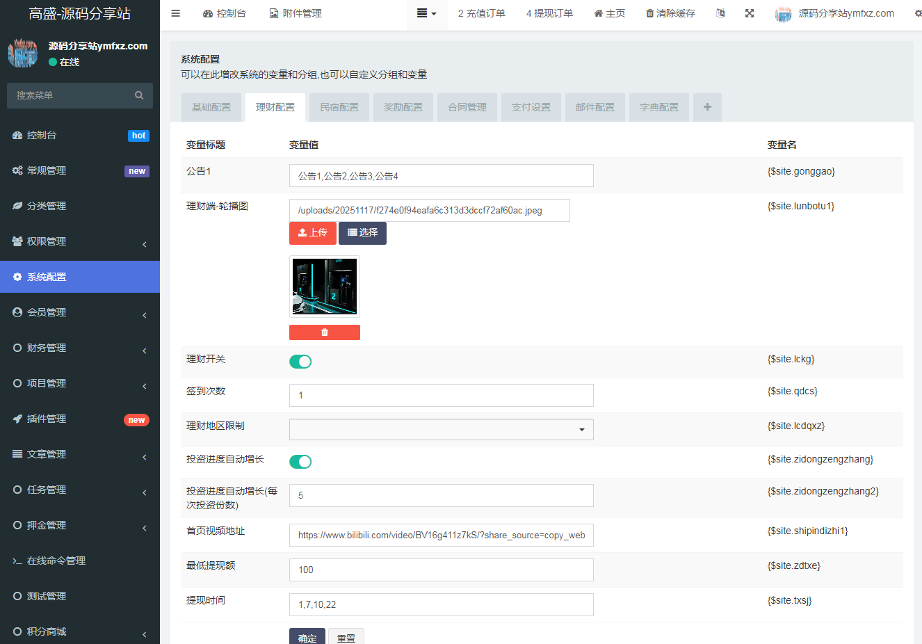 全开源的一套资金盘投资理财源码,可以改成任意产品,可以二次开发前端UI,前端uniapp纯源码,后端fastadmin框架