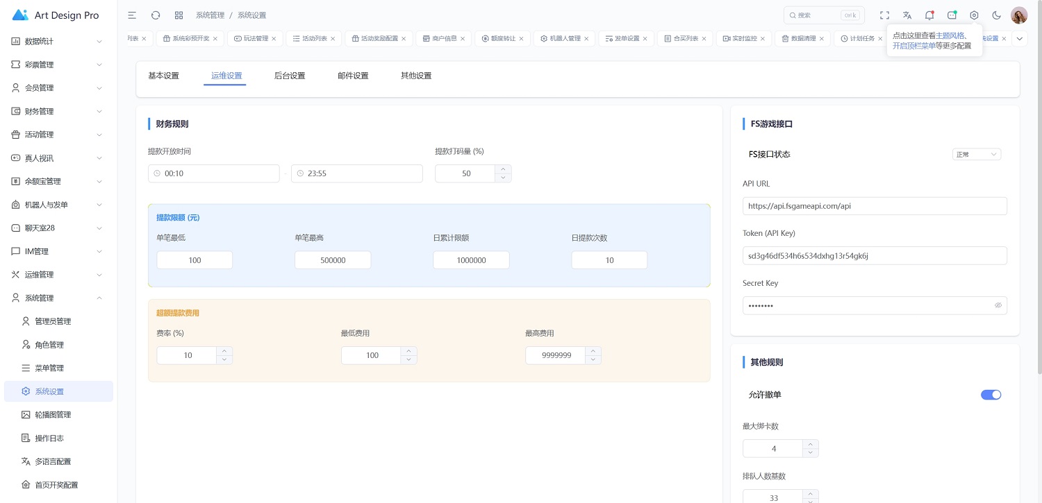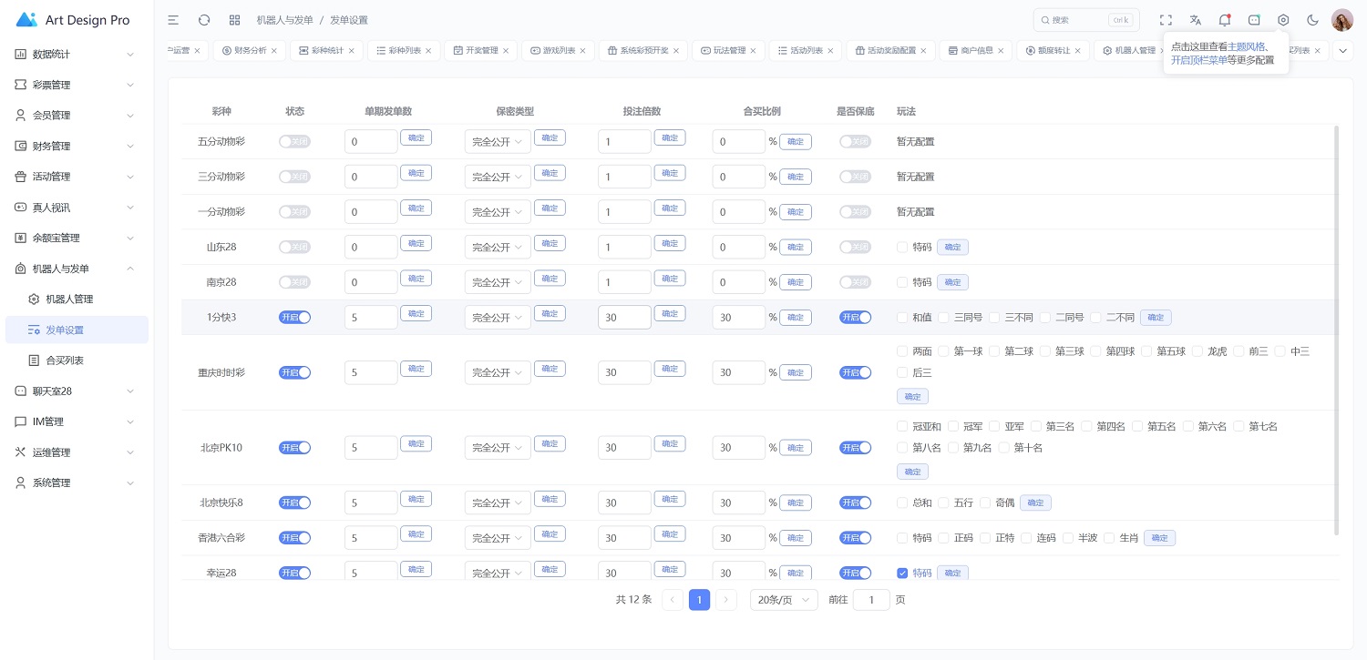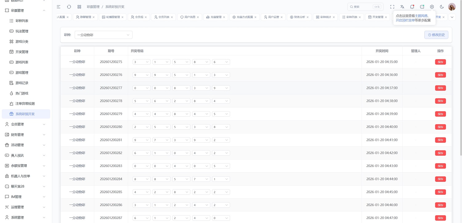 这套系统最大的亮点彩票是系统游戏的,不是第三方接口游戏,真人、体育、电子那些是第三方接口