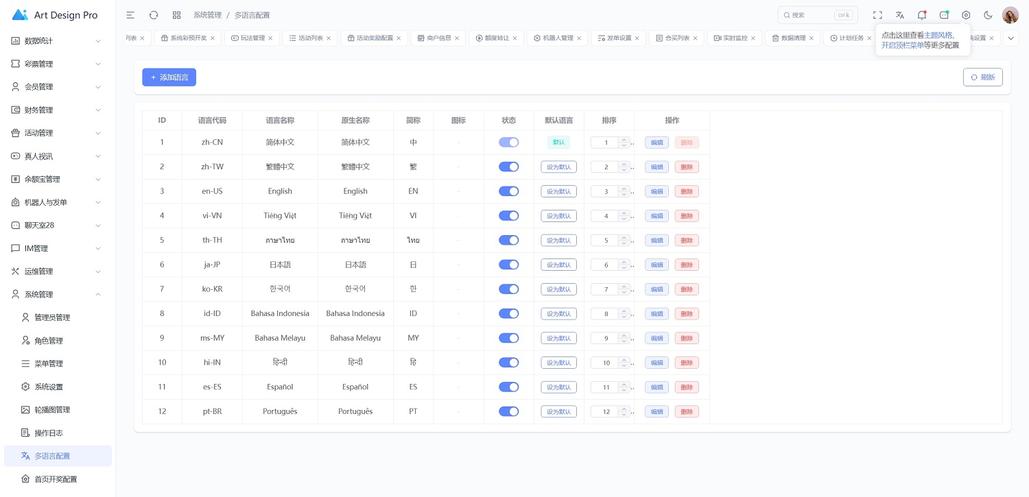 前端语言:12种,简体中文、繁体中文、英文、日语、泰语、韩语、越南语、印尼语、马来语、印地语、西班牙语、葡萄牙语