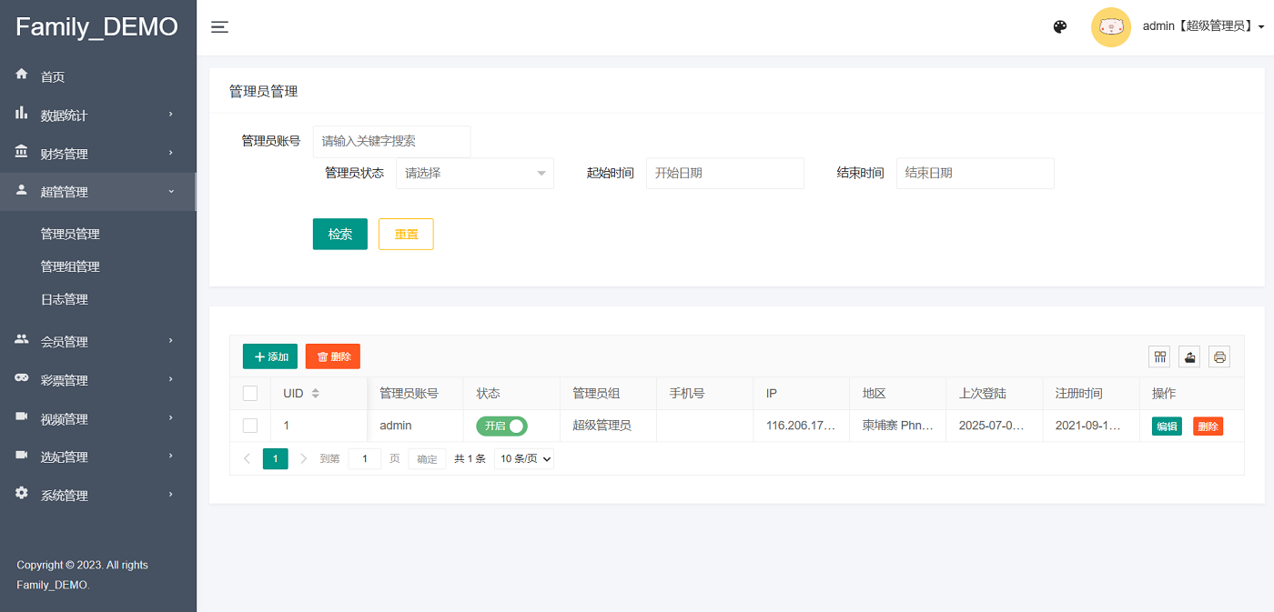 后台账号:admin 密码:123456