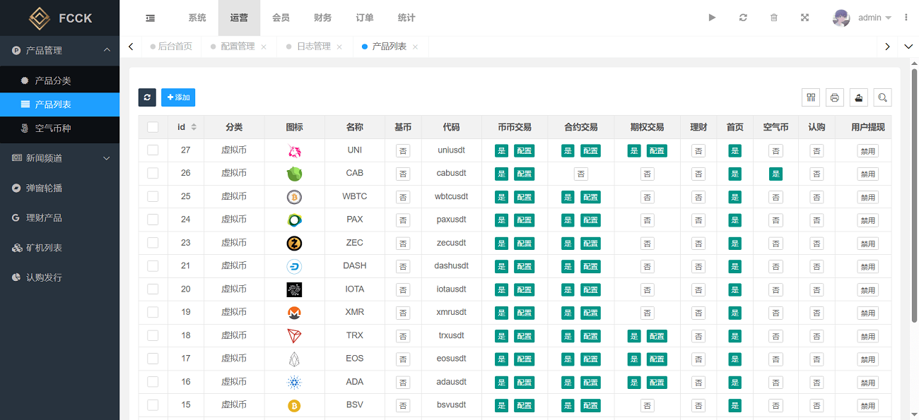 有币币交易、期权交易、永续合约、Defi借贷、新币申购、矿机投资理财等功能,还可以发行空气币(平台币),后台能控制期权交易订单的输赢