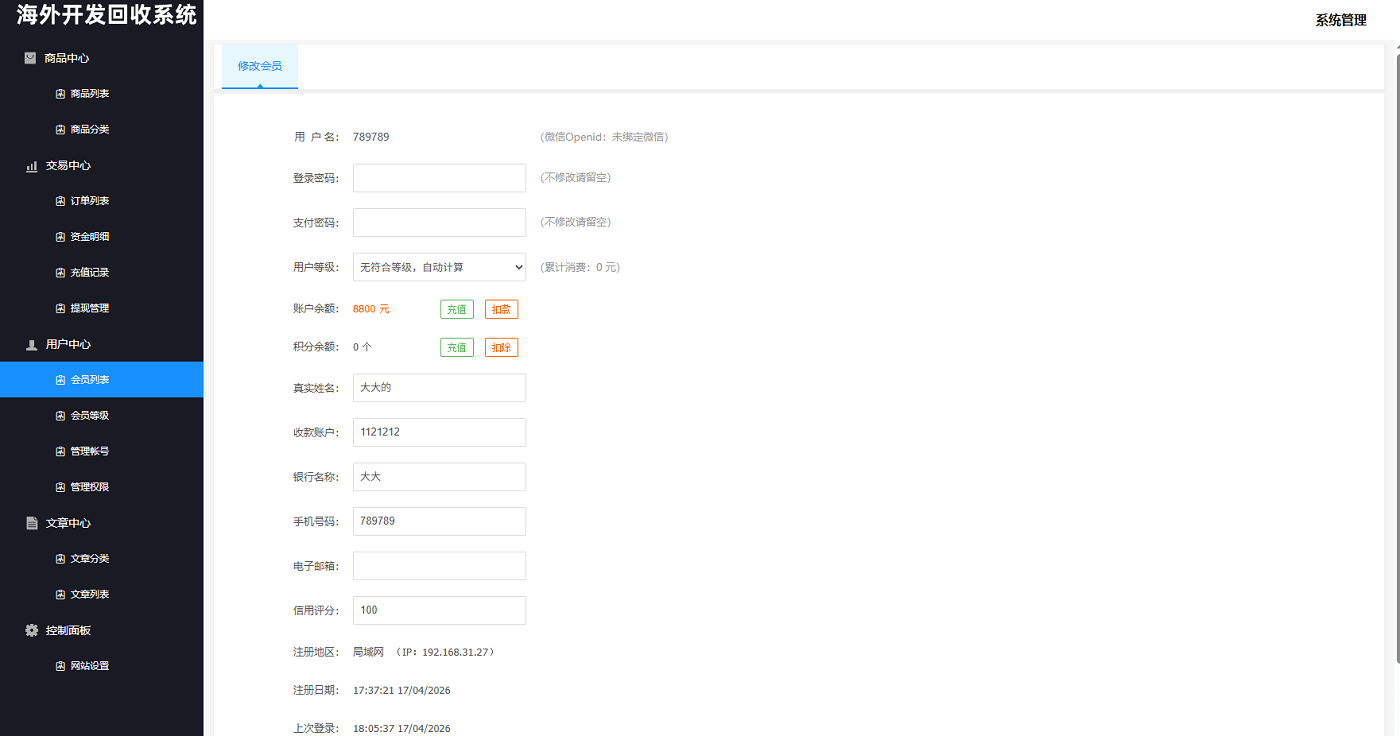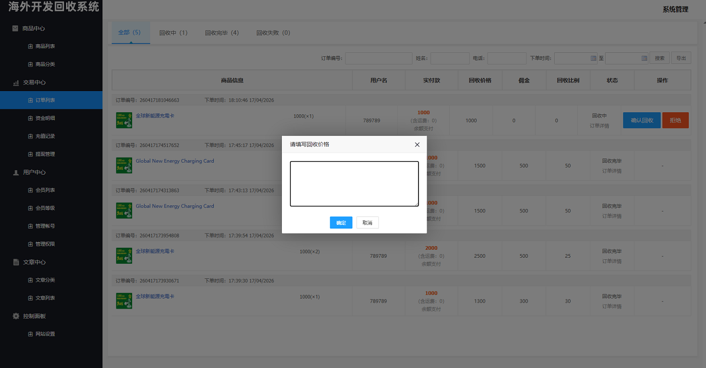 海外新能源商品回收系统,资金盘投资源码,自定义回收,信用分,多语言订单回收