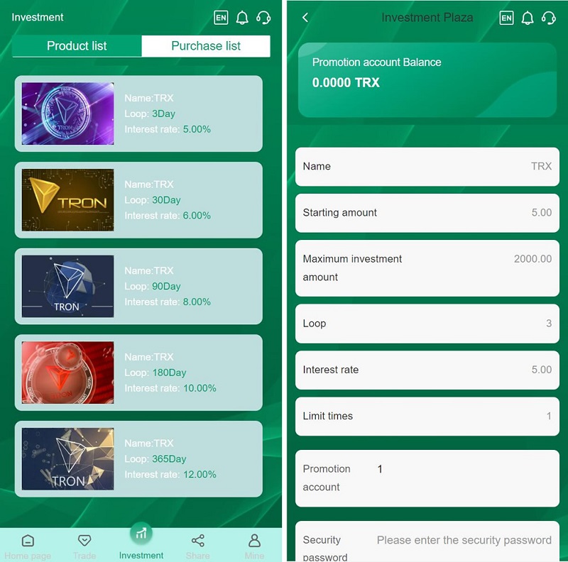 绿色全新TRX理财源码,全新UI,二开后全新功能,支持代理独立皮肤